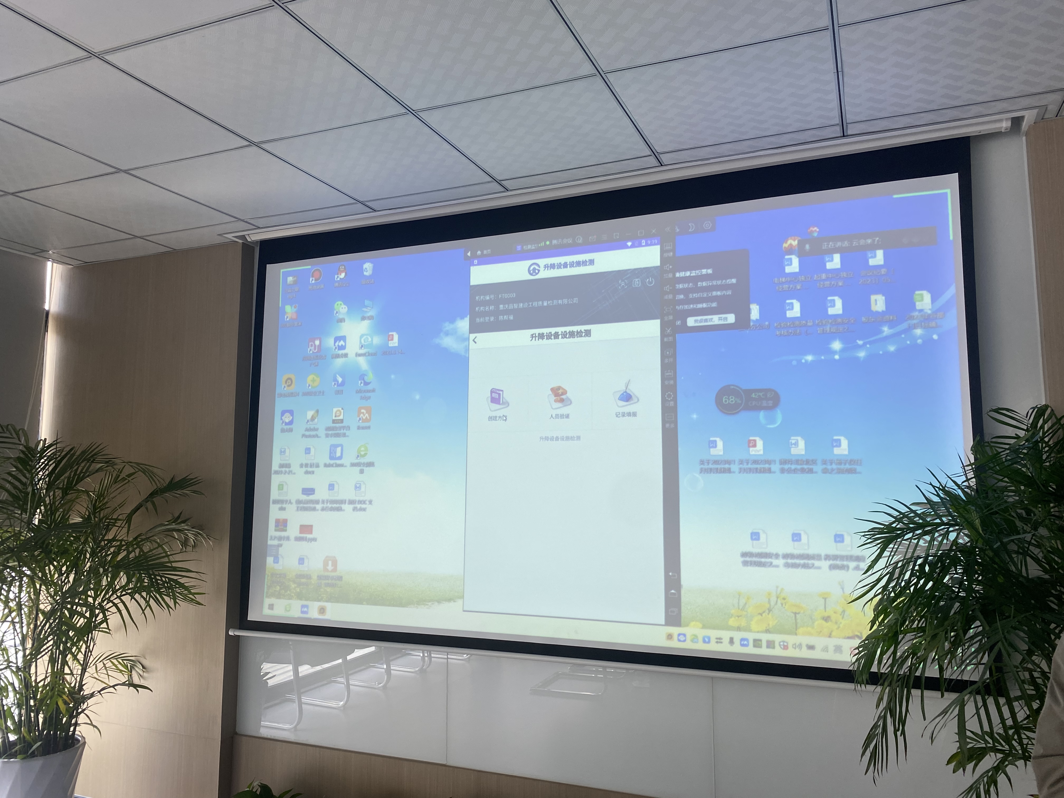 副总曾凤对《重庆市建设工程施工安全管理总站关于启用升降设备设施检测系统的通知》(渝建安发[2022]78号)文件进行了宣读,对“升降设备设施检测系统”手机端和电脑端的操作方法分别进行了详细讲解。
