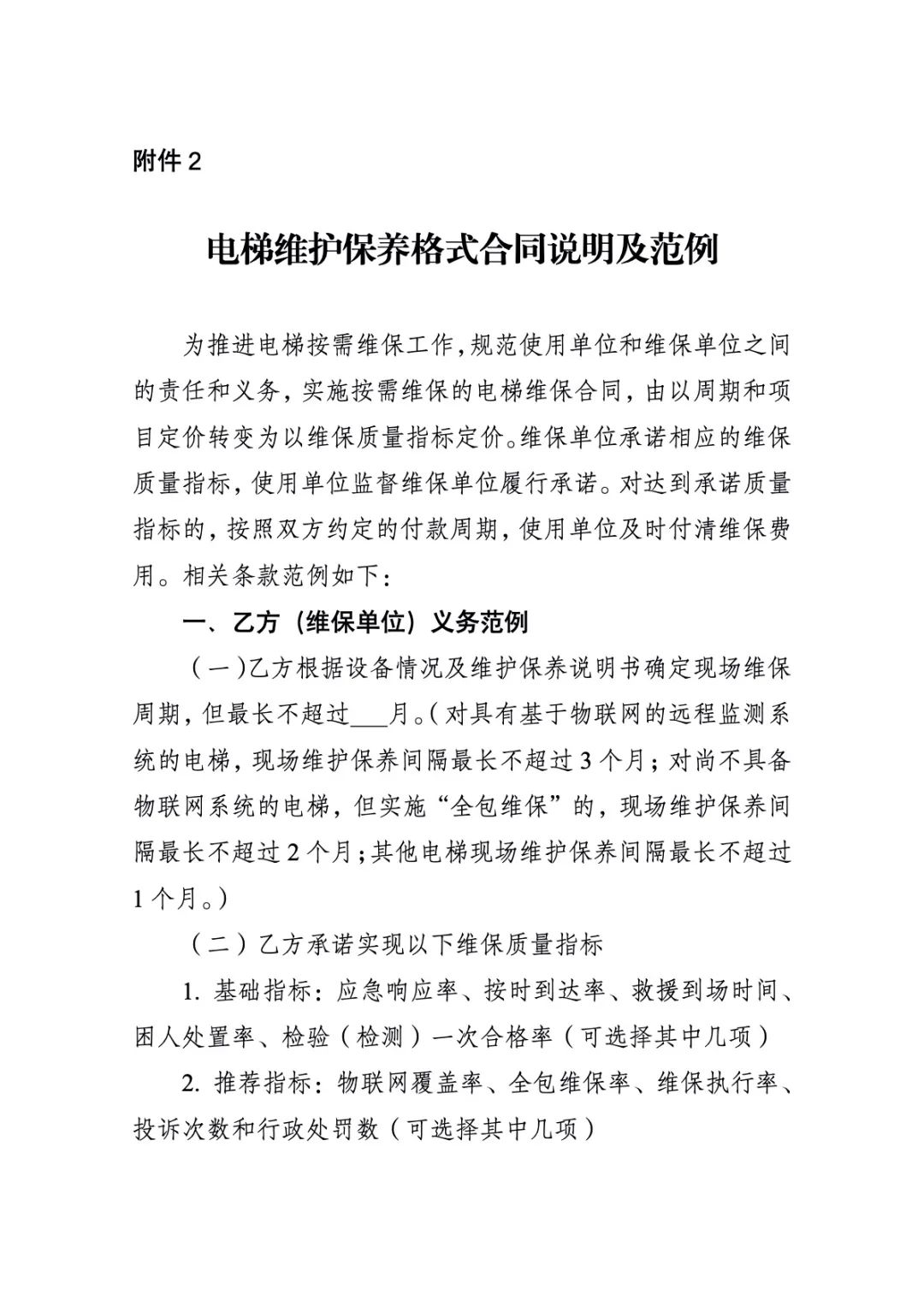 2.电梯维护保养格式合同说明及范例